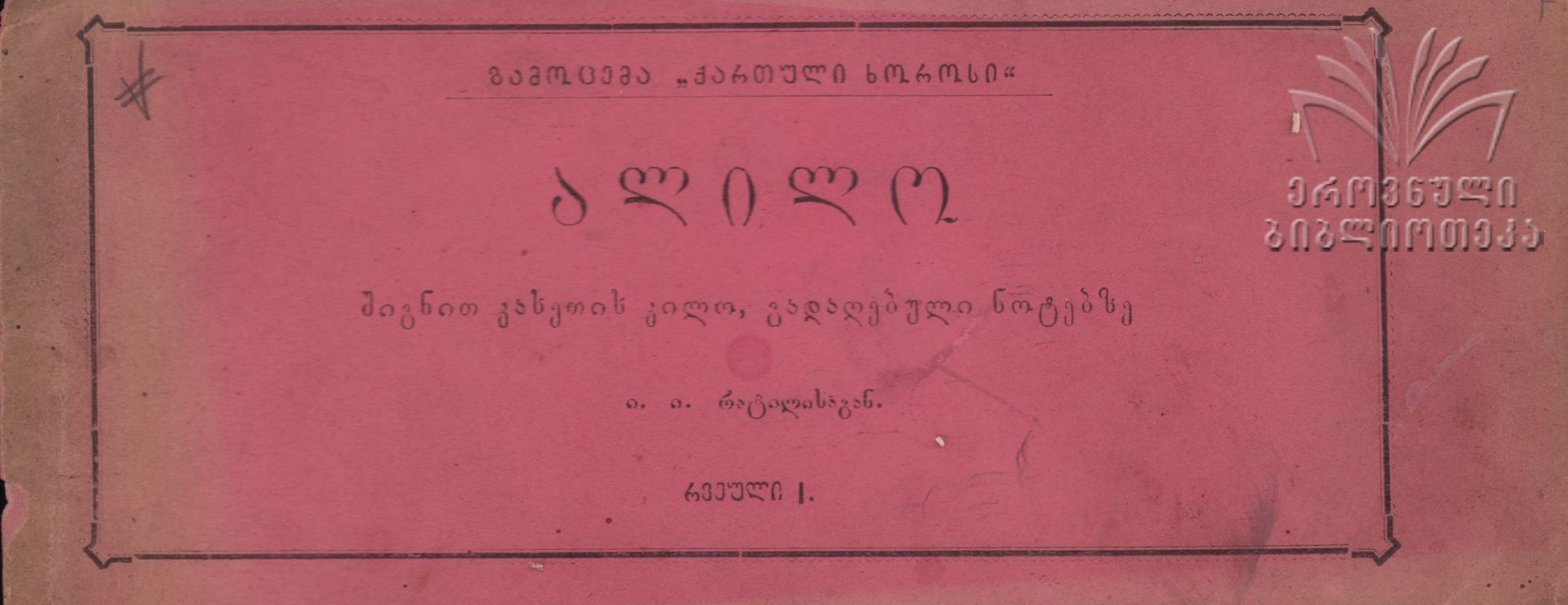 - 2.“Alilosatvis shemdgari khoro” (Choir arranged for alilo). Tsnobis purtseli, no. 410 (December 24, 1897): 2.