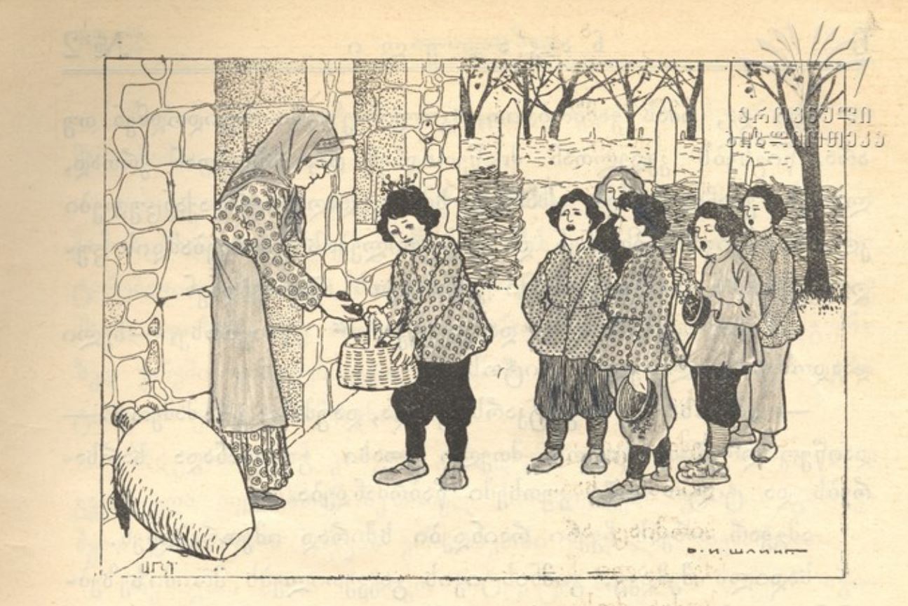 It is a winter evening: the village streets are covered in snow; in the windows you can see the reflection of flames flickering in the fireplace, as the smoky smell fills the air; children are crouching by the fireplace waiting for sweets as the women get ready. At dusk, the song of those walking along fenced-in paths interrupts the reign of silence and fills people’s hearts with hope and joy. This is how I imagine Christmas evening in old, distant Georgia.